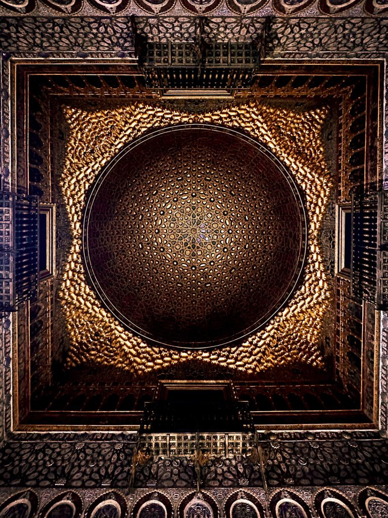 - Salón de Embajadores: The royal throne room, crowned by a golden dome carved with geometric precision.